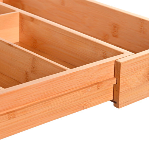 Este cubertero tiene unas medidas iniciales de 33 cm de longitud, 45,5 cm de fondo y 6,4 cm de altura, pero su característica más destacada es su capacidad para extenderse hasta los 56 cm. Esta función extensible permite ajustar el cubertero a diferentes tamaños de cajones, proporcionando una flexibilidad que pocos otros productos ofrecen.