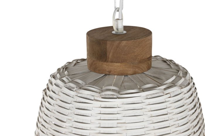 El color blanco del diseño resalta el acabado envejecido, ofreciendo una estética contemporánea pero con un aire vintage que complementa una variedad de estilos decorativos, desde lo bohemio hasta lo industrial. Esta lámpara es una excelente opción para quienes buscan una iluminación que también sea un elemento decorativo en el hogar.